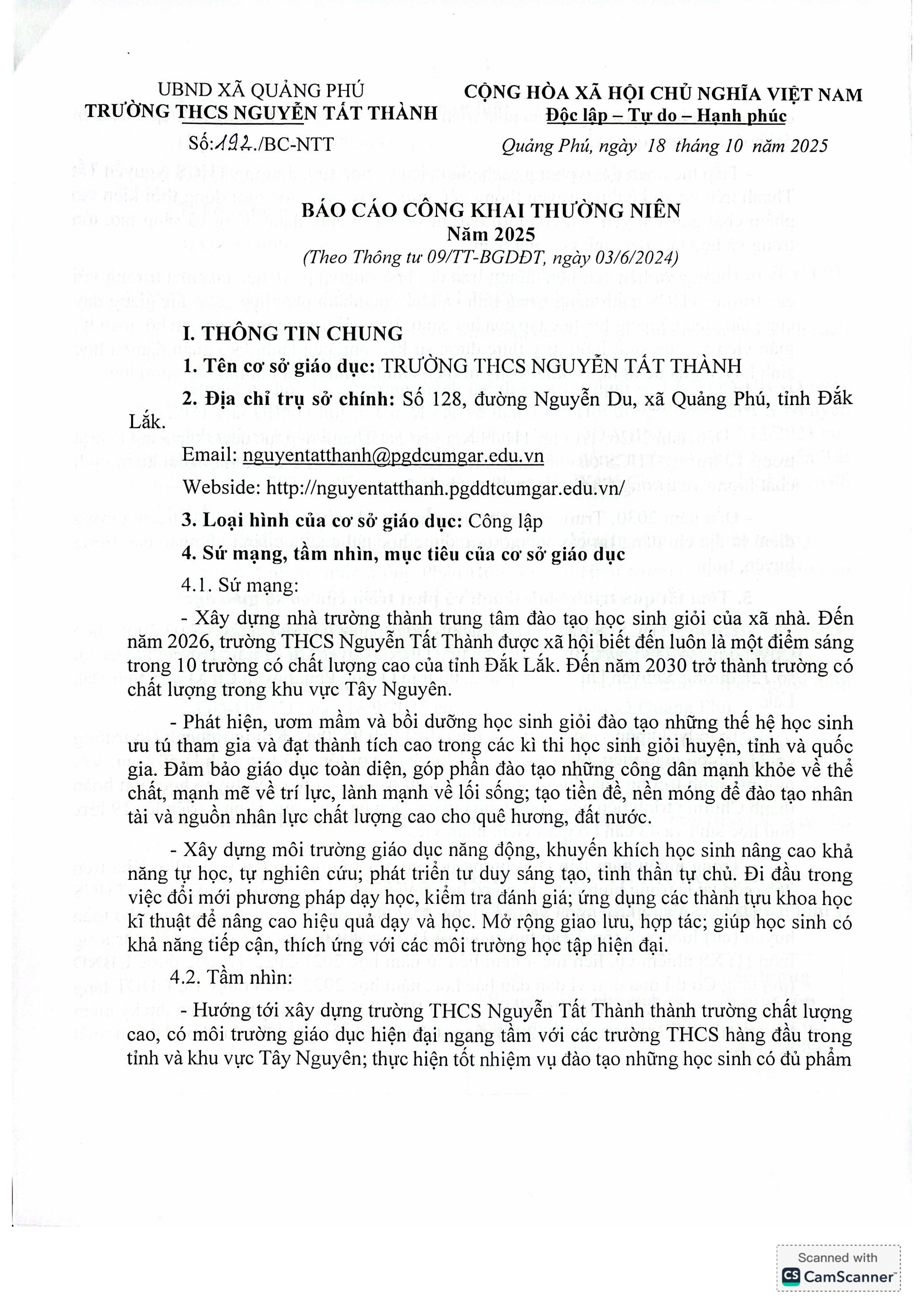 BÁO CÁO CÔNG KHAI THƯỜNG NIÊN NĂM 2025