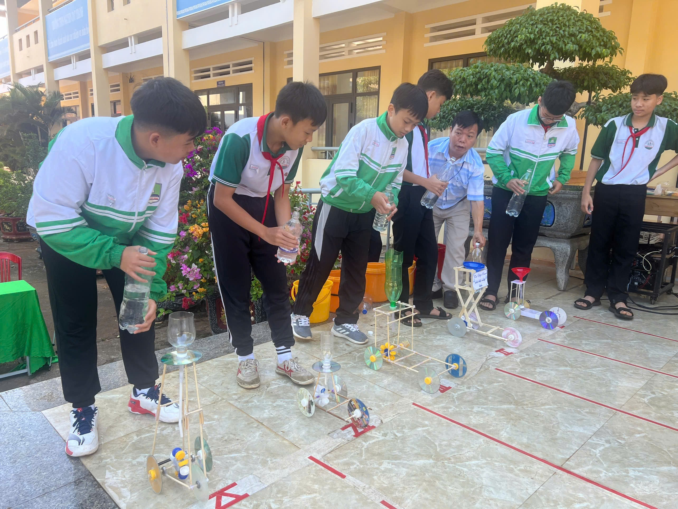 Tiếp đó, Hội thi “Xe chạy bằng sức nước” giữa các chi đội khối 7 và 8 đã diễn ra hấp dẫn. Các em vận dụng kiến thức liên môn theo định hướng STEM để thiết kế, chế tạo các mô hình xe từ vật liệu tái chế, sử dụng năng lượng thân thiện với môi trường. Kết quả, Ban Tổ chức đã trao 01 giải Nhất cho chi đội 8A3, 01 giải Nhì cho chi đội 7A3, 02 giải Ba cho chi đội 8A1, 8A2, 02 giải Khuyến khích cho chi đội 8A4, 7A4 và 01 giải “Xe thiết kế đẹp nhất” cho chi đội 8A2.