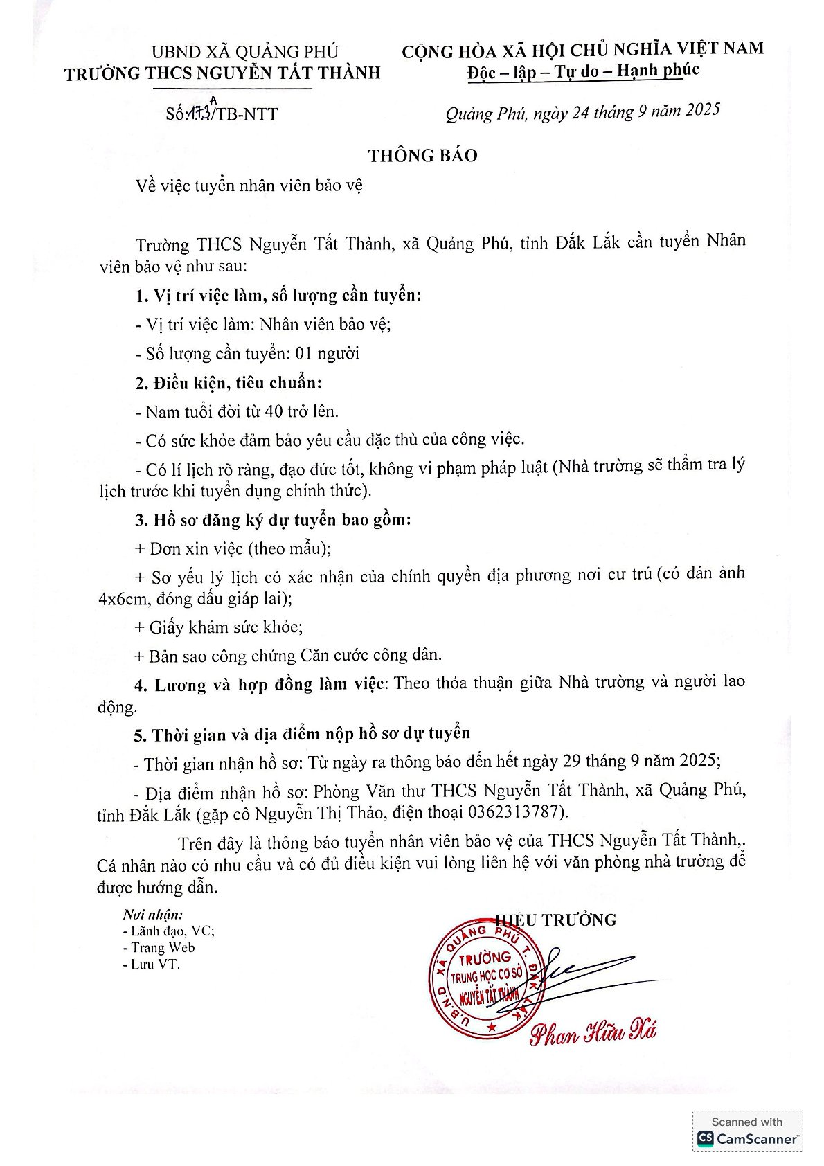 • Thông báo về việc tuyển nhân viên bảo vệ